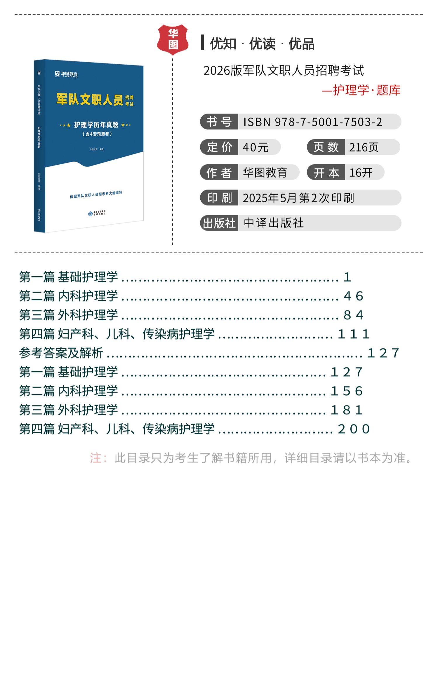 2026版军队文职【公共科目+护理学】考试专用教材+历年试题+题库由华图图书为您提供,更多最新全国通用军队文职图书考试图书教材请关注华图图书!