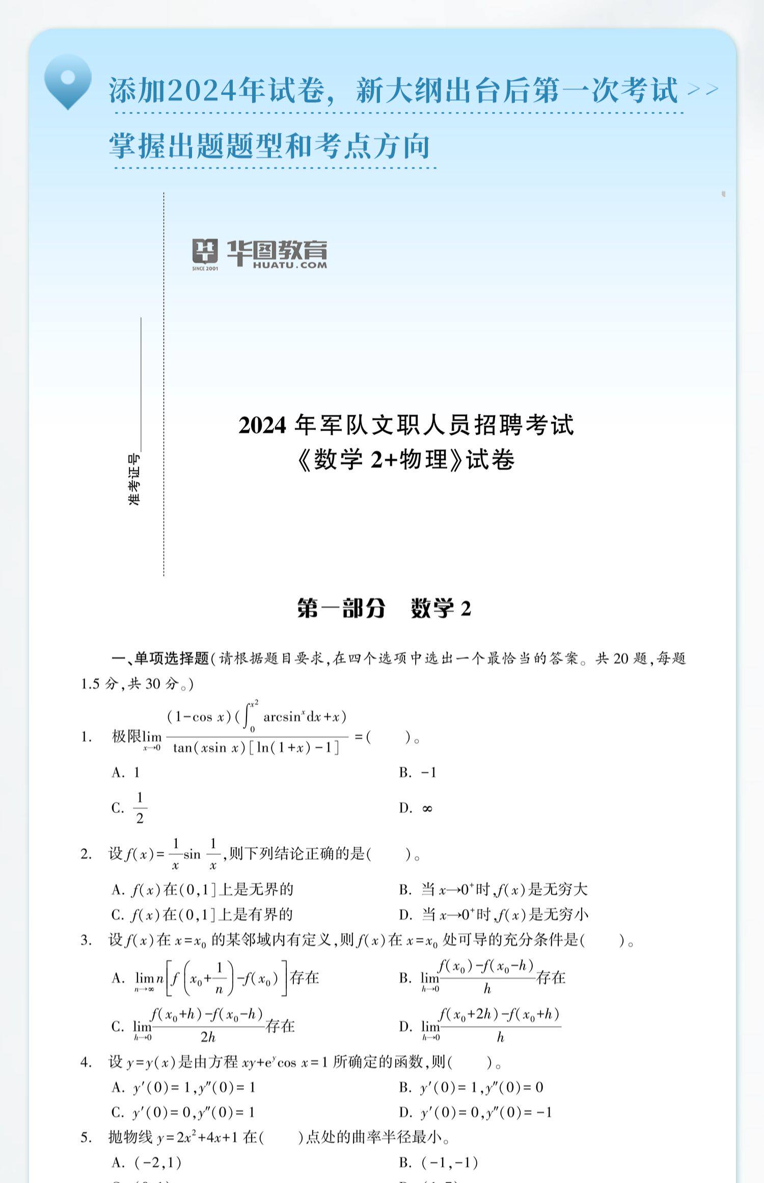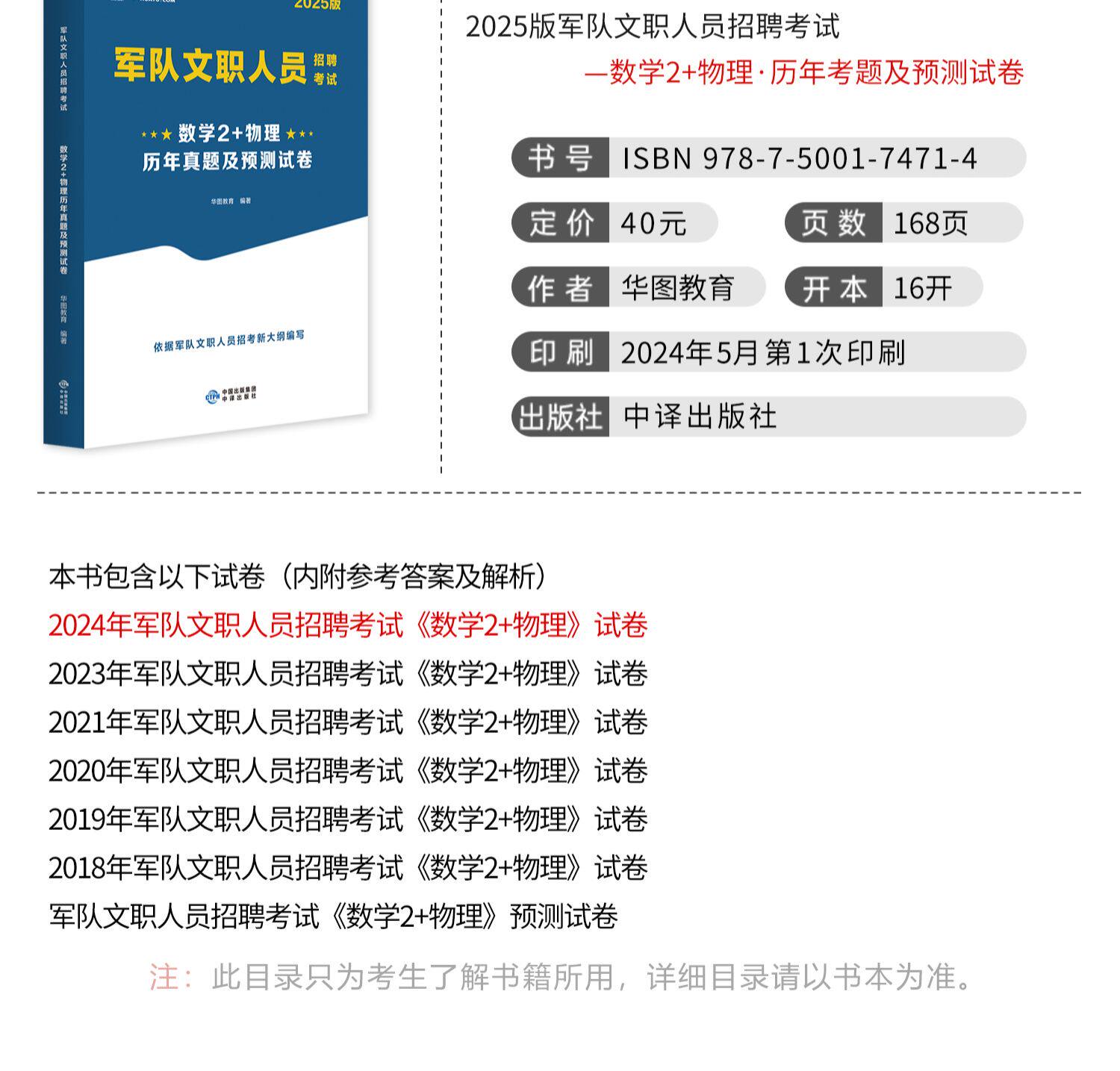 2025版军队文职人员招聘考试【数学2+物理】教材+历年试题预测卷 2本由华图图书为您提供,更多最新全国通用军队文职图书考试图书教材请关注华图图书!
