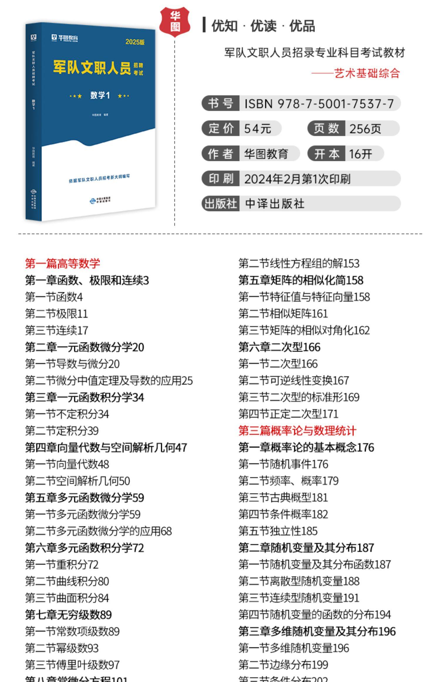 【华图图书】为您提供2025军队文职专业科目【数学1】教材+历年试题 2本套,更多最新全国通用军队文职图书考试网校课程及视频请关注华图图书!
