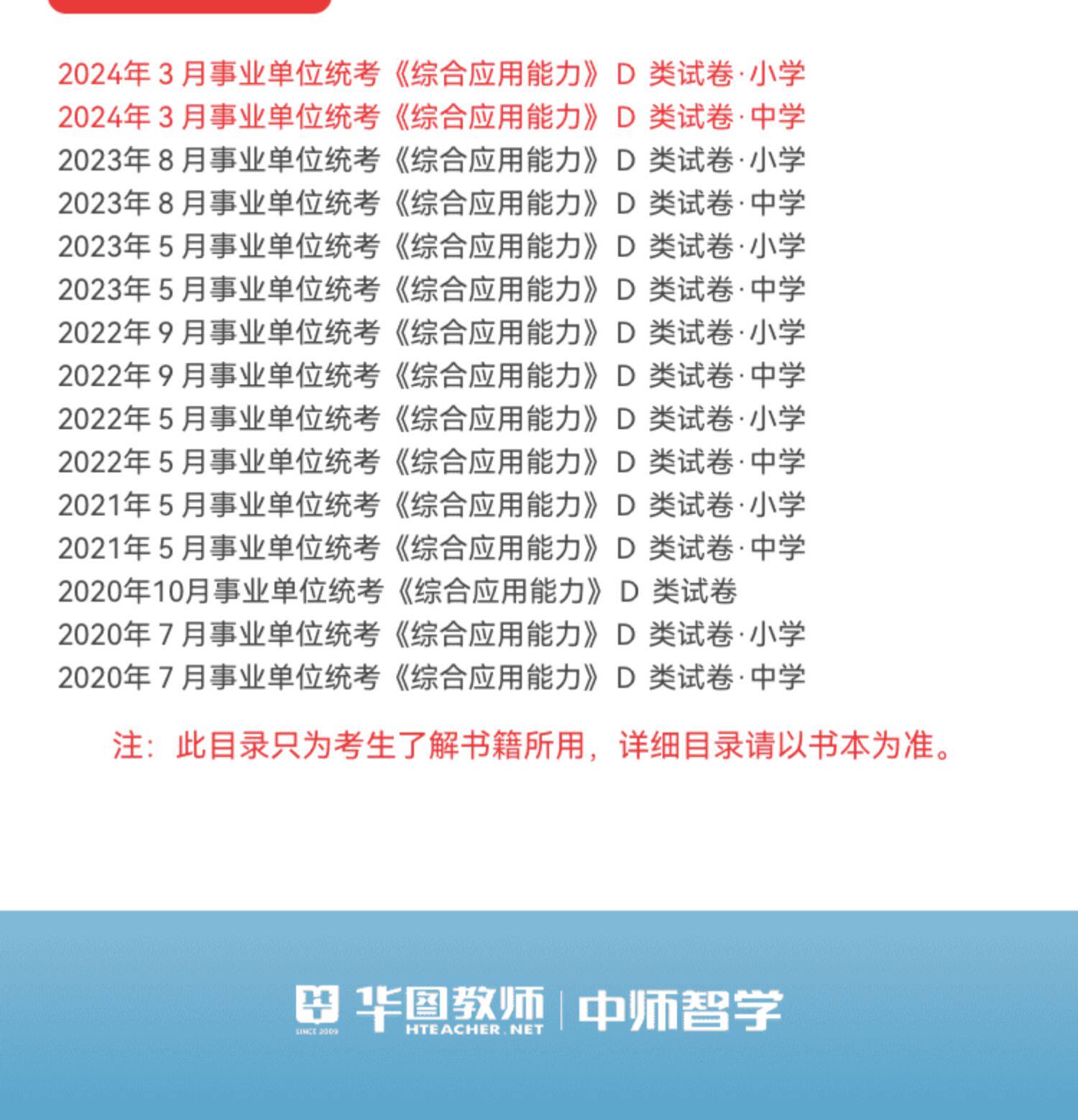【华图图书】为您提供2024事业单位D类【综合应用能力】历年试题,更多最新全国通用事业单位图书考试网校课程及视频请关注华图图书!