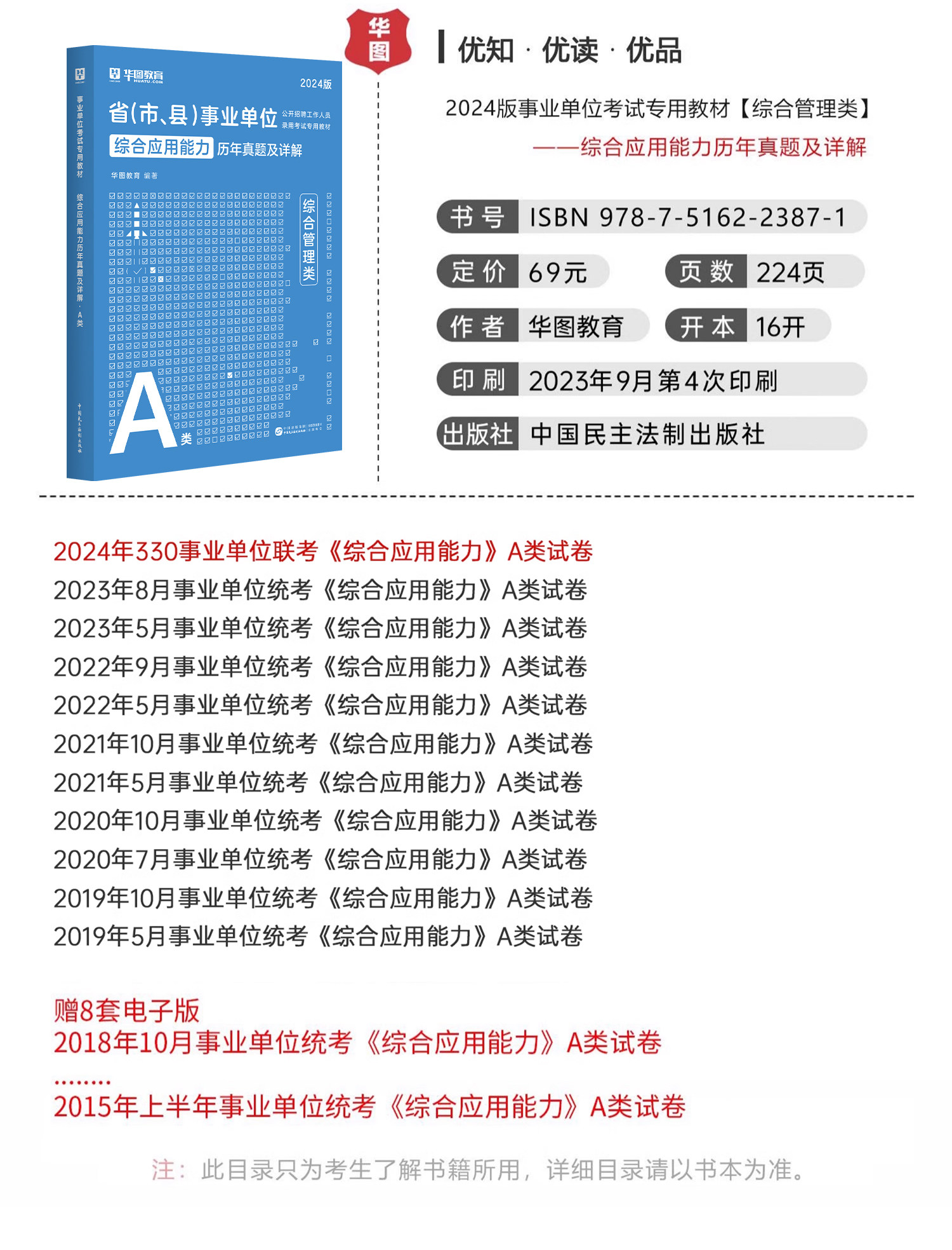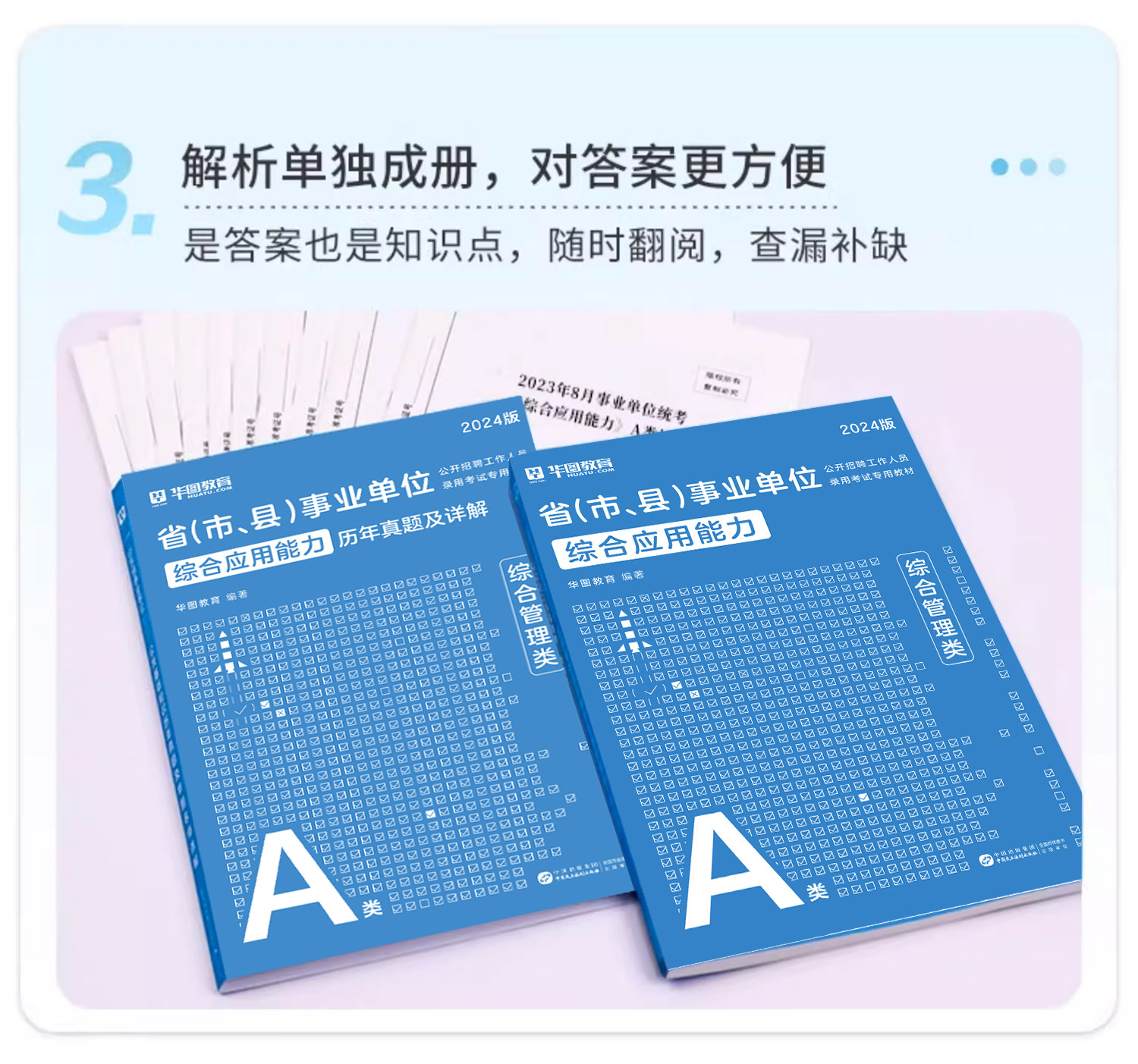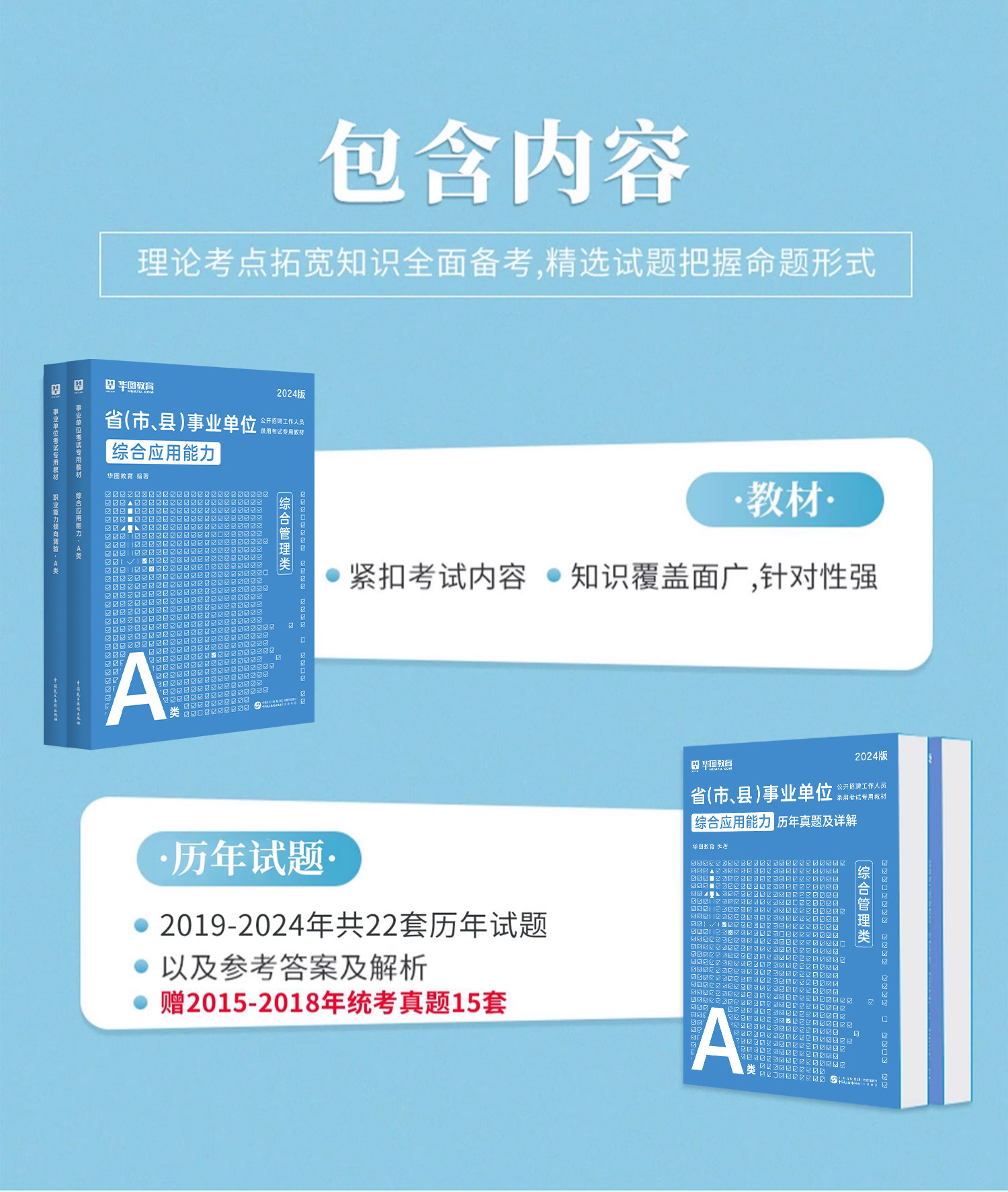 【华图图书】为您提供【A类】2024事业单位考试 综合应用能力+职业能力倾向测验·A类 教材+历年+题库 8本,更多最新全国通用事业单位图书考试网校课程及视频请关注华图图书!