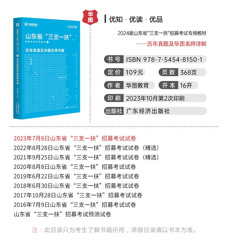 【华图图书】为您提供2024版山东省“三支一扶”招募考试专用教材+历年 2本,更多最新山东三支一扶图书考试网校课程及视频请关注华图图书!