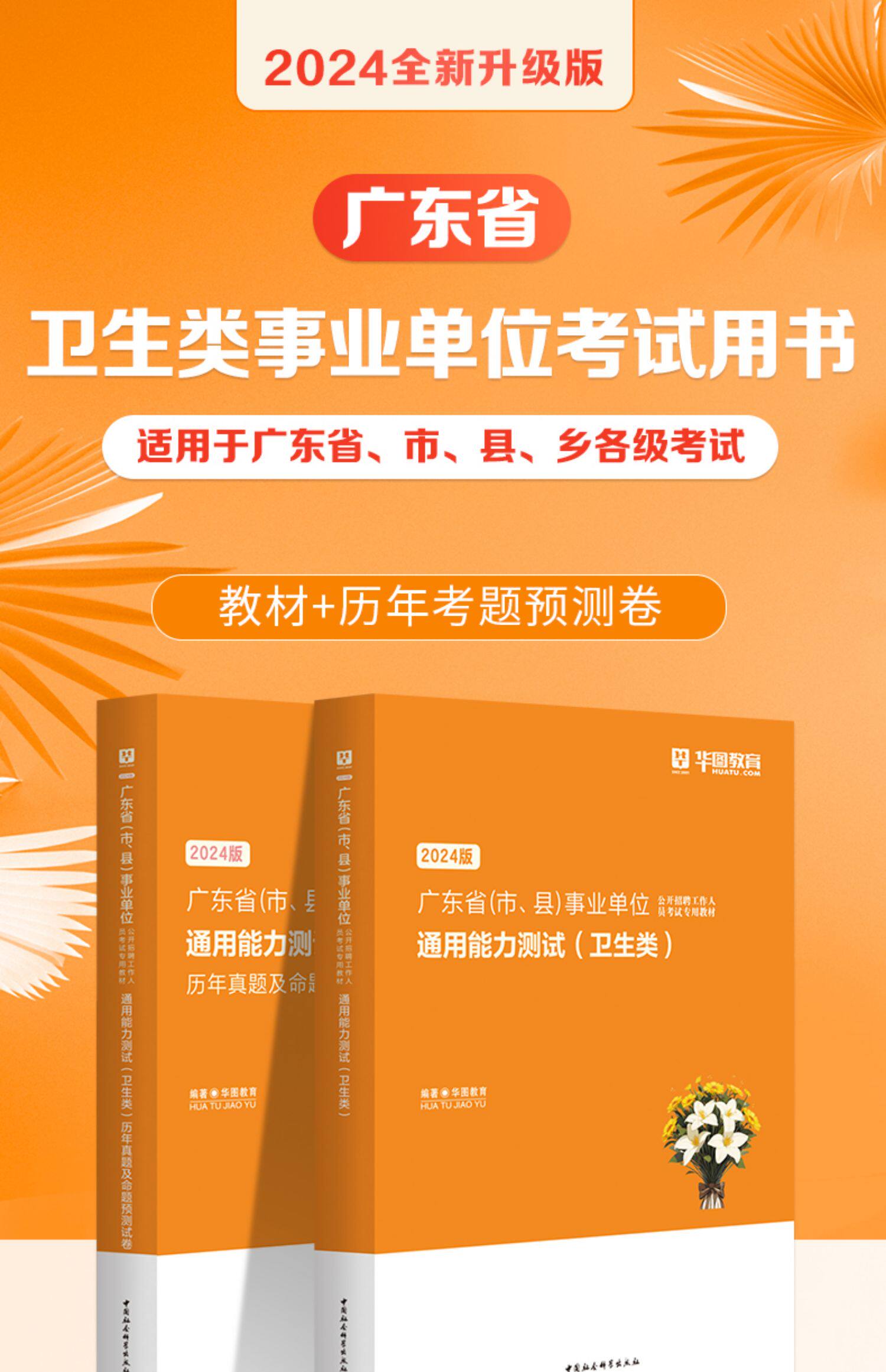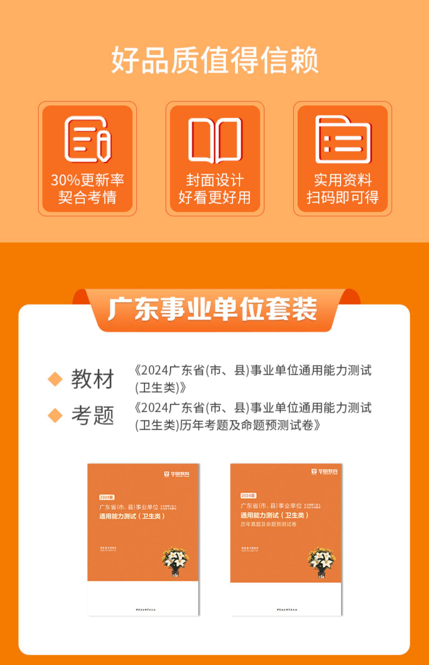 【华图图书】为您提供2024版广东省(市、县)事业单位通用能力测试(卫生类)教材+历年 2本,更多最新广东医疗卫生图书考试网校课程及视频请关注华图图书!