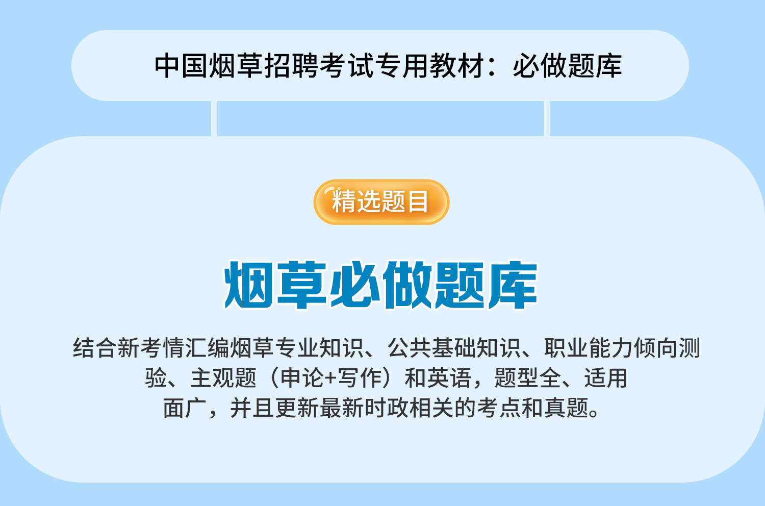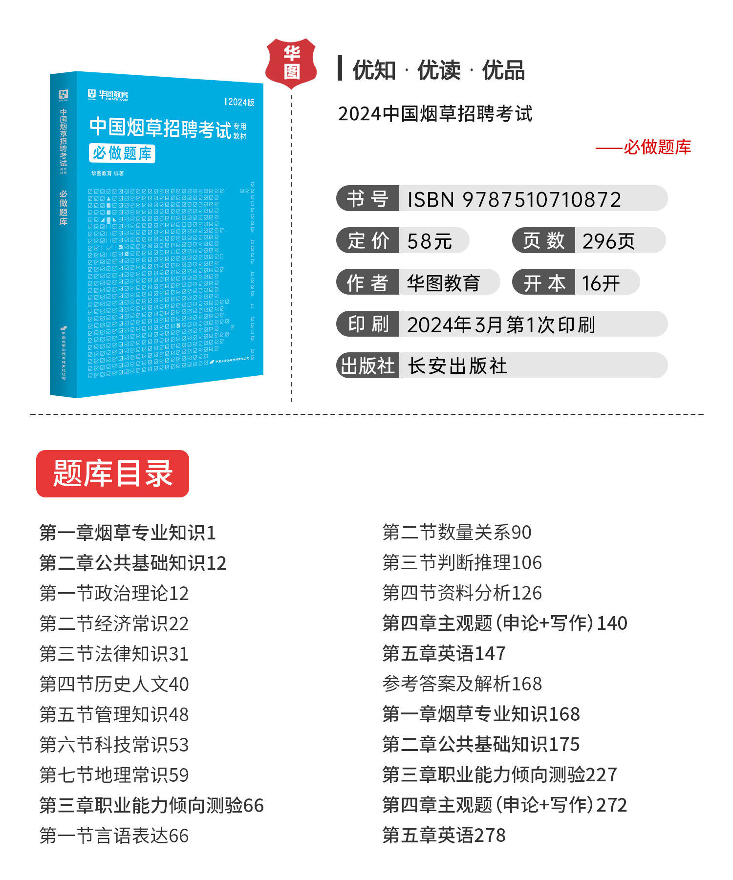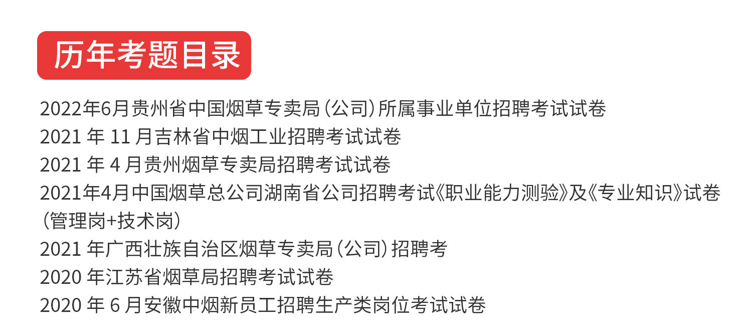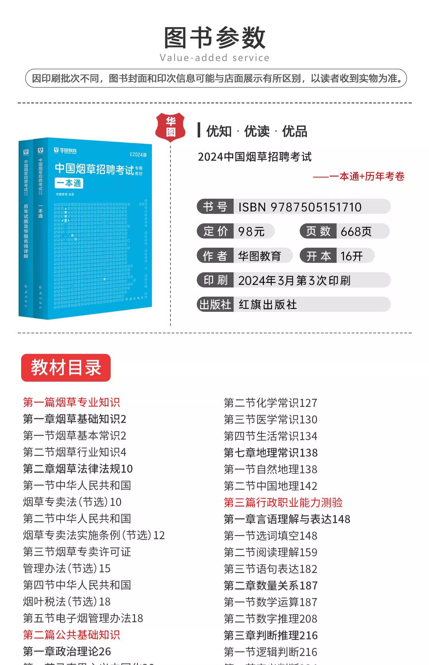 【华图图书】为您提供2024版中国烟草招聘考试专用教材+历年试题+必做题库 3本,更多最新全国通用烟草招聘图书考试网校课程及视频请关注华图图书!